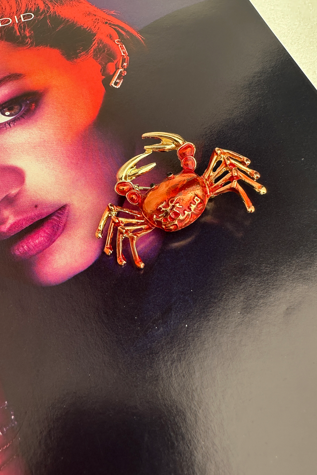 Burcunuzun enerjisini stilinize yansıtın! Yengeç burcundan ilham alan bu özel broş, altın rengin asaletiyle birleşen canlı kırmızı detayları sayesinde dikkat çekici ve anlam dolu bir aksesuar sunuyor.