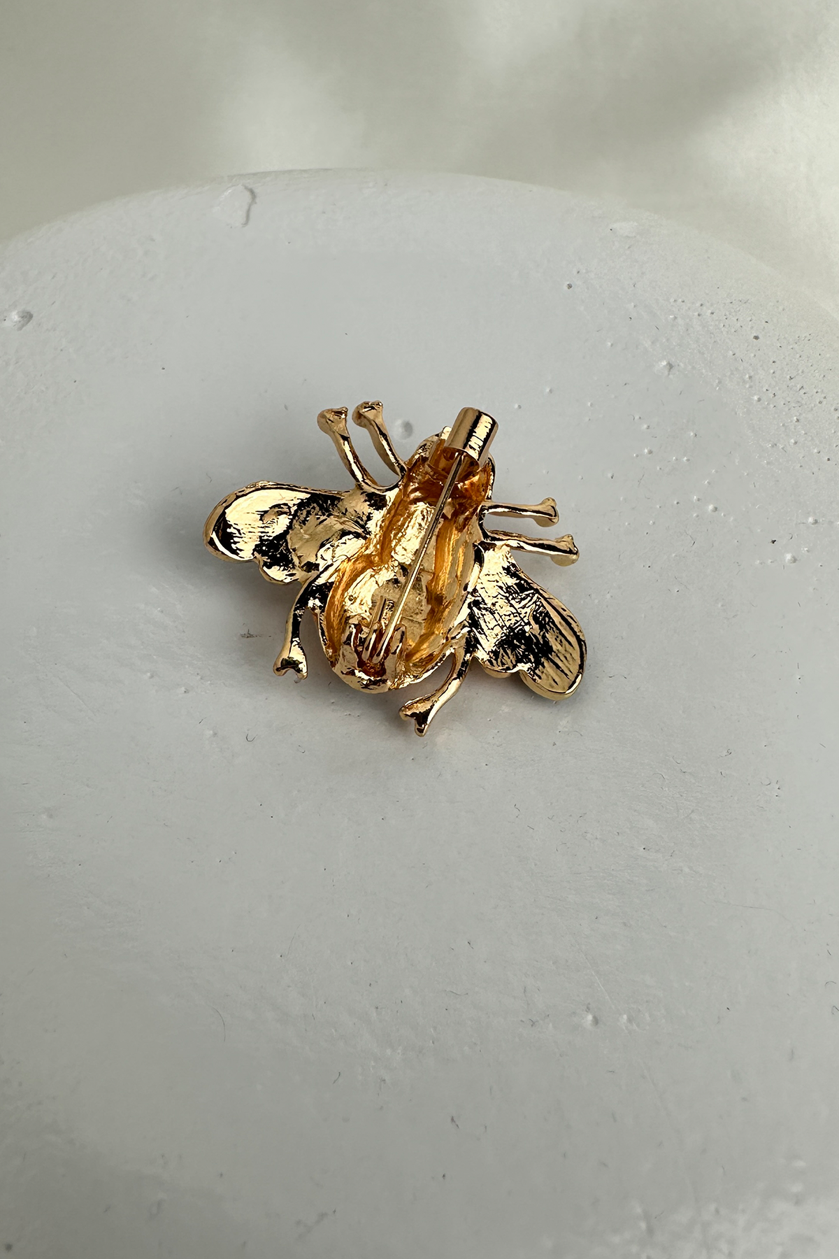 Altın Rengi Kristal Beyaz Taşlı Mineli Arı Broş (3cm)