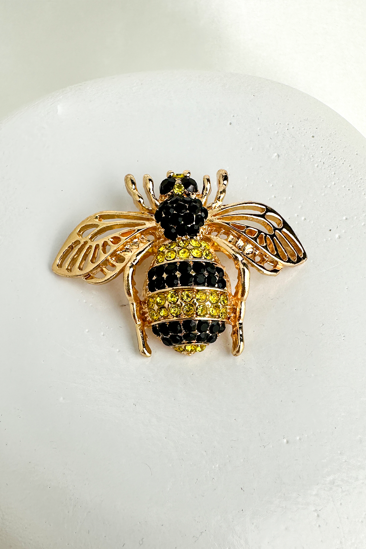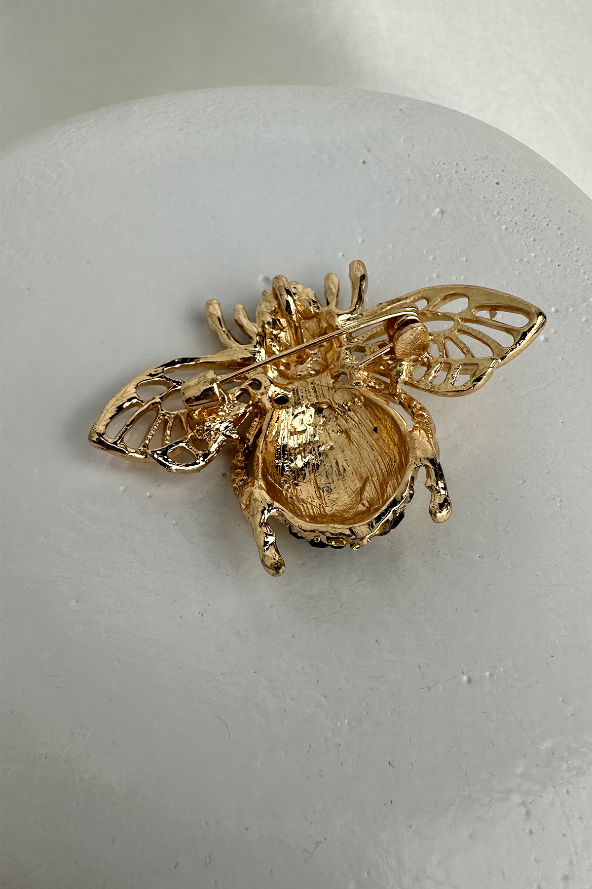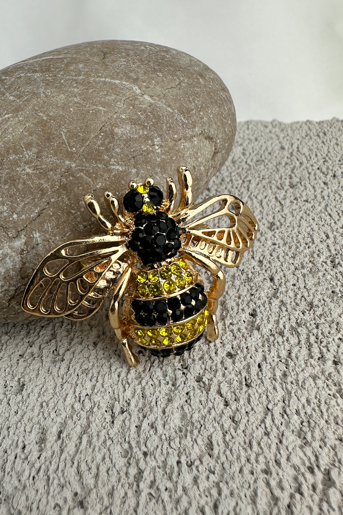 Altın Rengi Sarı Siyah Taş Detaylı Arı Broş (5cm)