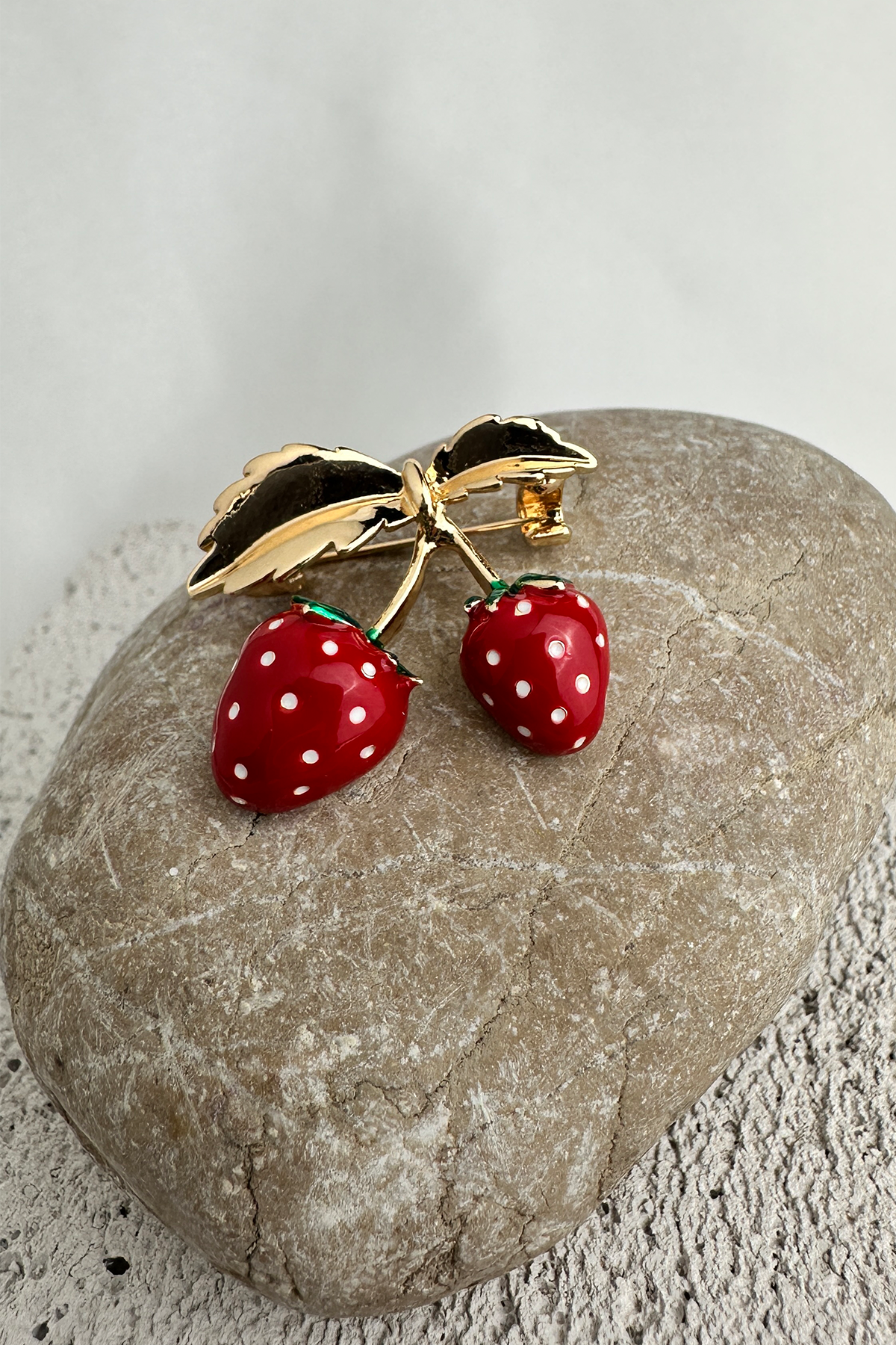 Tarzınıza neşeli ve zarif bir dokunuş katmak ister misiniz? Altın Sarısı Kırmızı Beyaz Mineli Çilek Broş, canlı renkleri ve sevimli tasarımıyla kombinlerinize tatlı bir enerji katıyor!