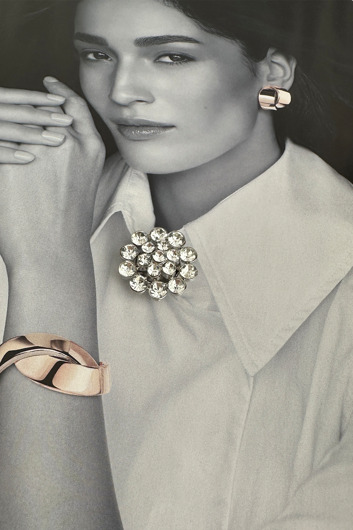 Şıklığı zarafetle buluşturan bu özel tasarım kol düğmesi, çiçek formundaki zarif detayları ve parıltılı taş süslemeleriyle öne çıkıyor. Hem klasik hem modern stillere uyum sağlayan bu aksesuar, tarzınızı tamamlamak için ideal.
