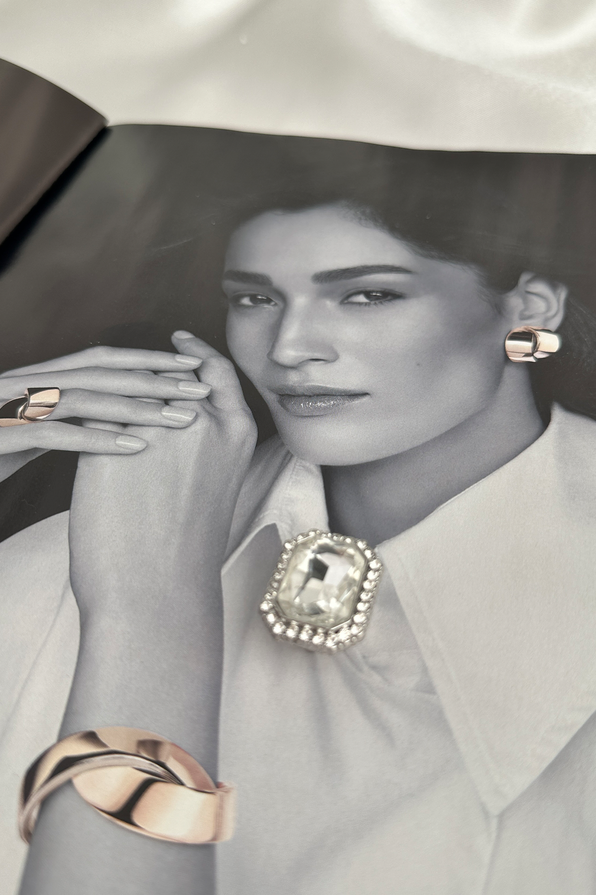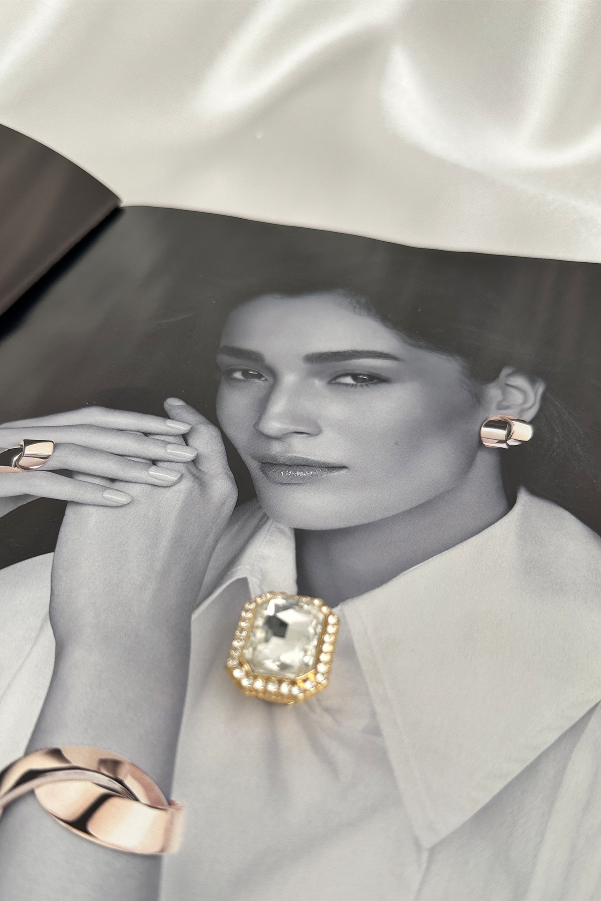 Minimalist çizgilerle şıklığı bir araya getiren bu dikdörtgen formdaki kol düğmesi, yüzeyinde yer alan zarif sıra taş detaylarıyla sade ama etkileyici bir görünüm sunar. Modern stilin vazgeçilmez aksesuarlarından biri olan bu tasarım, hem iş hem de özel davet kombinleri için mükemmel bir tamamlayıcıdır.