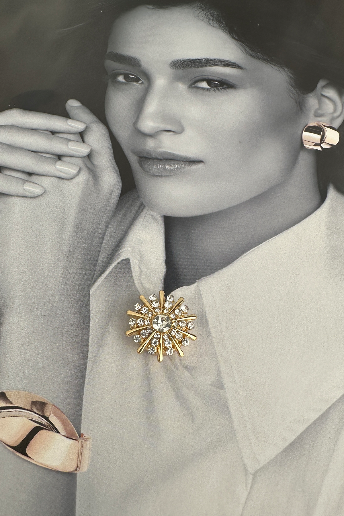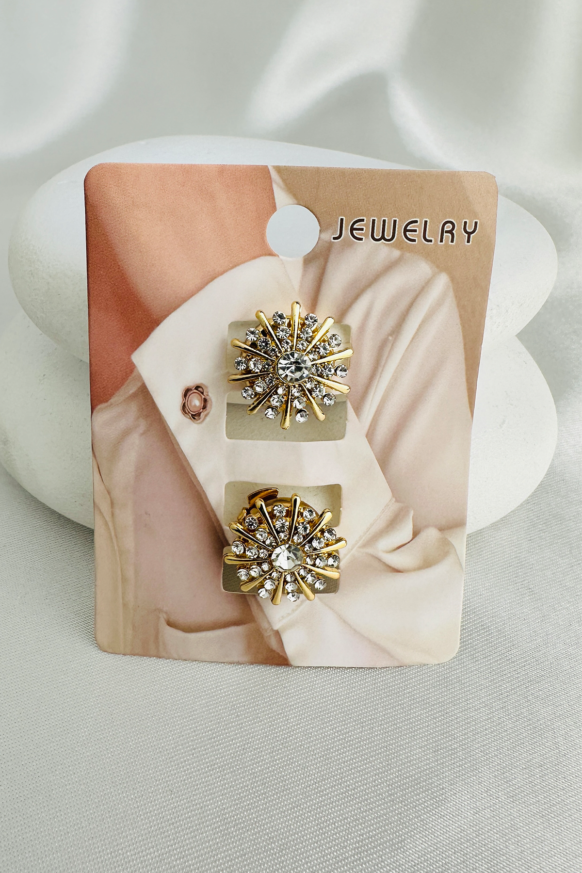 Şıklığın ve enerjinin simgesi olan bu güneş formundaki kol düğmesi, etrafını saran ışıltılı taş detaylarıyla tarzınıza parıltı katıyor. Klasik gömlek kombinlerine modern ve sofistike bir dokunuş yapmak isteyenler için özenle tasarlanmıştır.