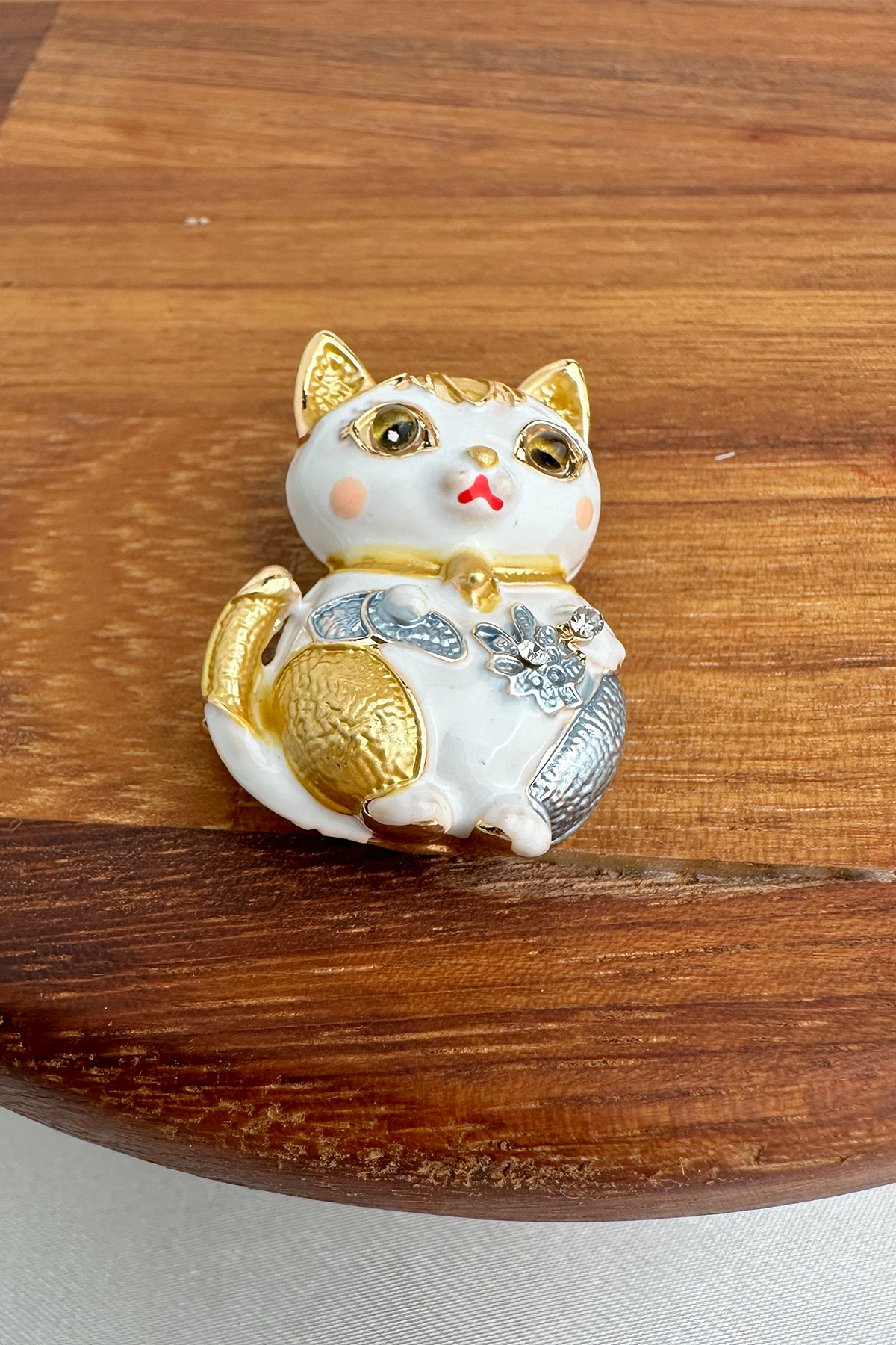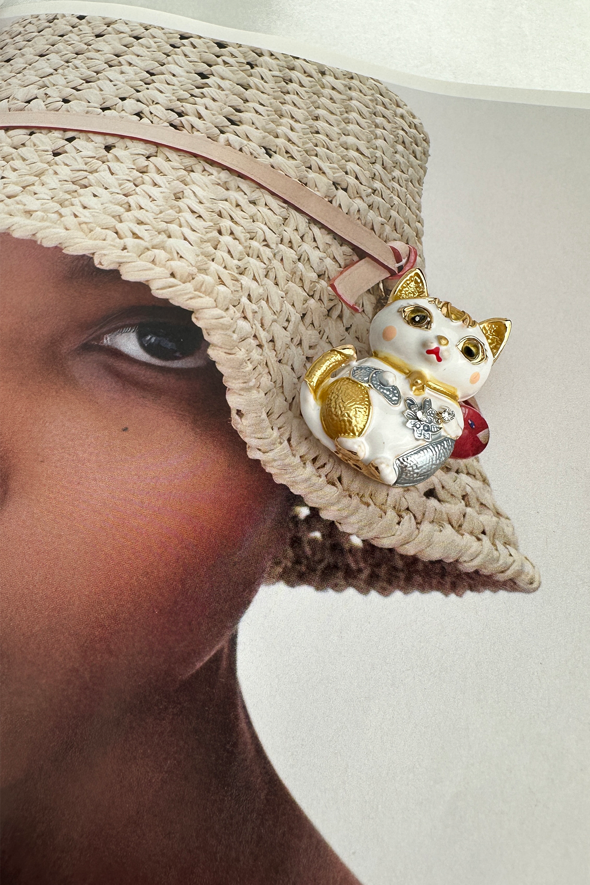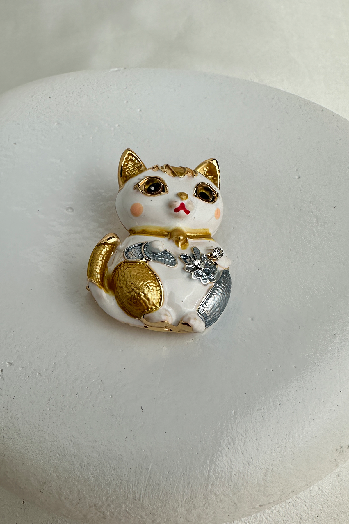 Asaletin ve sevimliliğin zarif bir temsili! Şık duruşuyla göz kamaştıran Sosyete Kedisi Broş, beyaz minesi ve zarif sarı yaldız detaylarıyla tarzınıza zarif bir dokunuş katıyor. 3 cm’lik ideal boyutu sayesinde günlük ya da özel kombinlerde kolayca kullanılabilir.