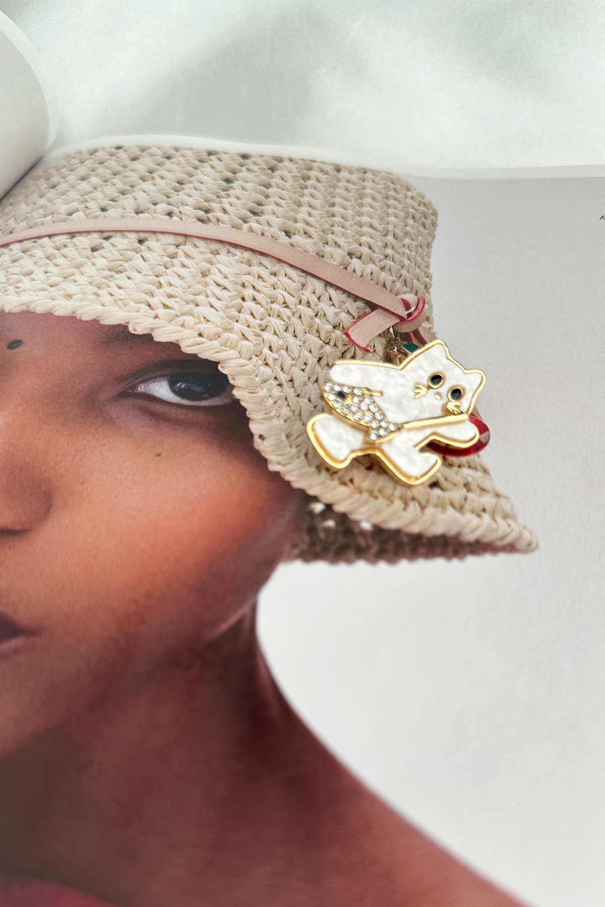 Şıklık ve sevimlilik tek bir broşta buluştu! Balık detayıyla oyuna düşkünlüğünü, taş süslemeleriyle zarafetini yansıtan bu Beyaz Mineli Kedi Broş, kombinlerinize eğlenceli ve zarif bir dokunuş katar. 3 cm boyutuyla hem şık hem kullanışlı bir aksesuar arayanlar için ideal.