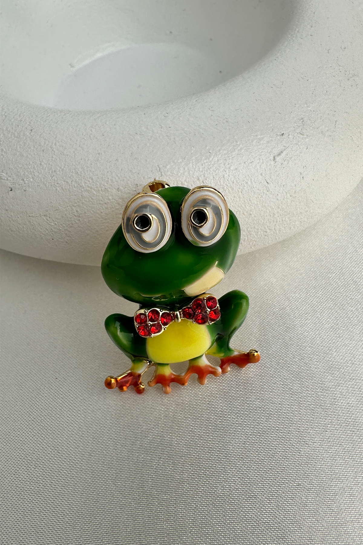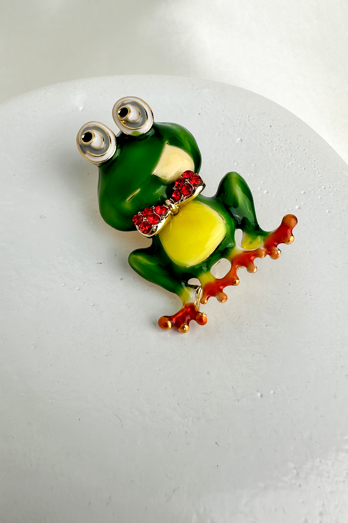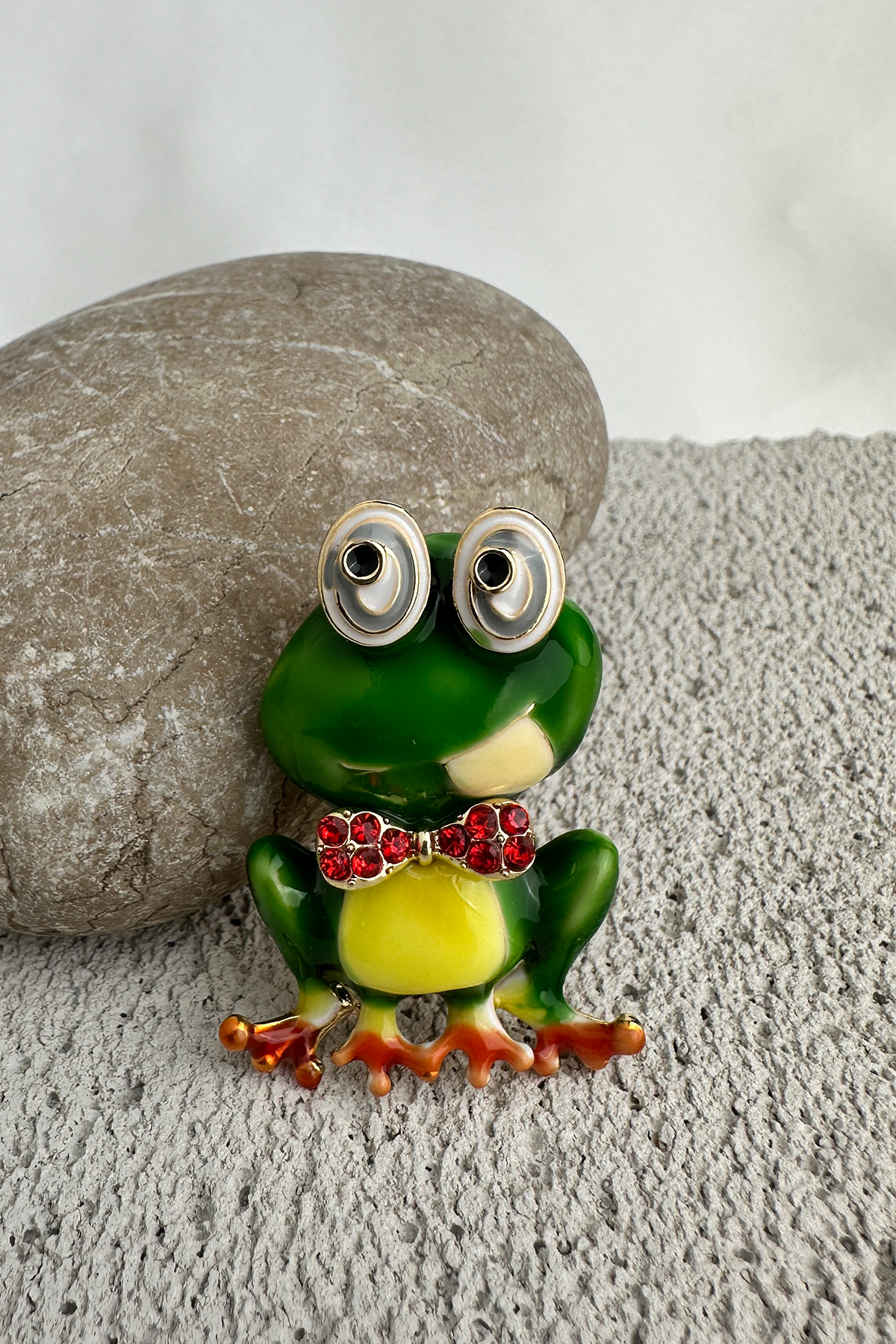 Renkli ve eğlenceli tarzınızı yansıtacak bu Yeşil Renk Kırmızı Taşlı Papyon Detay Kurbağa Broş, dikkat çekici tasarımıyla her kombine neşeli bir dokunuş katıyor. Canlı yeşil gövdesi, kırmızı taşlarla süslenmiş papyon detayı ve 4 cm’lik ideal boyutuyla hem şirin hem de şık bir aksesuar alternatifi sunar.
