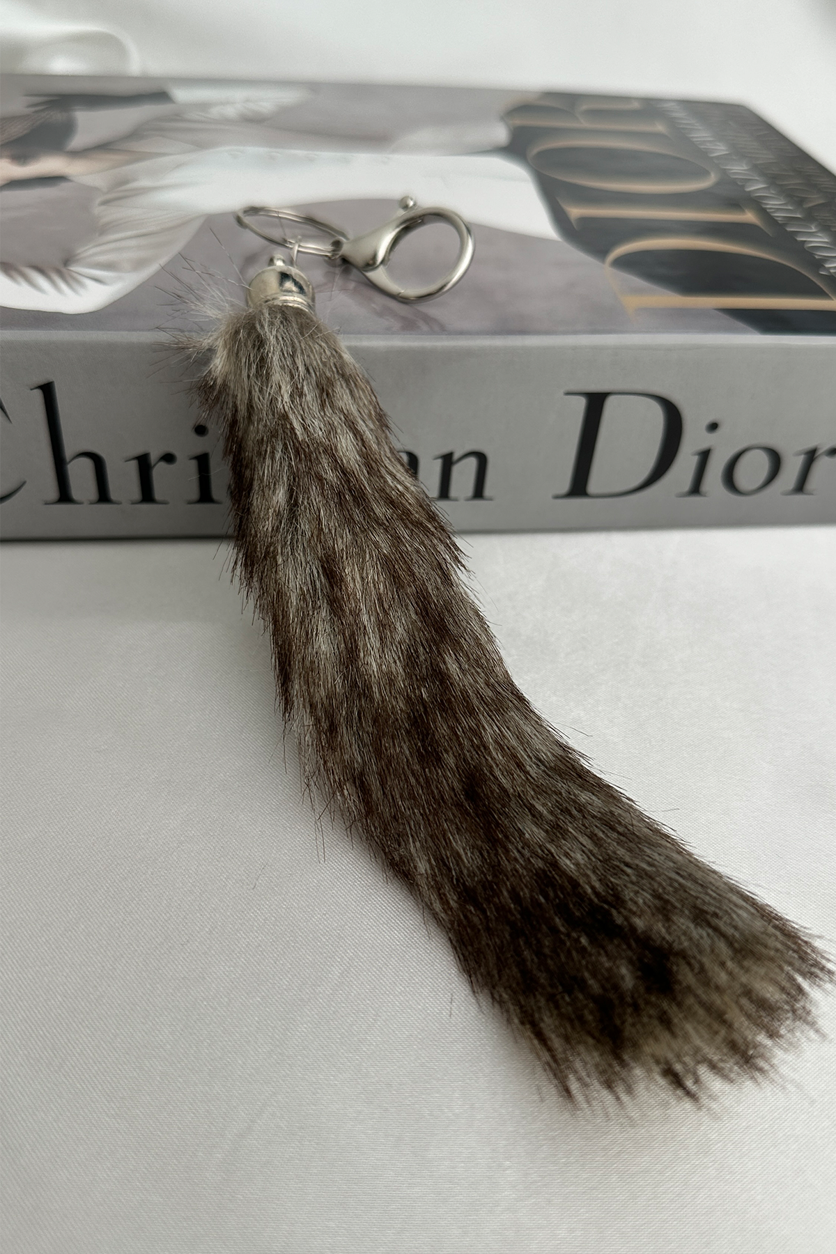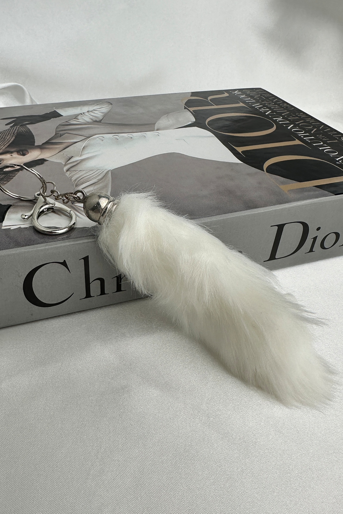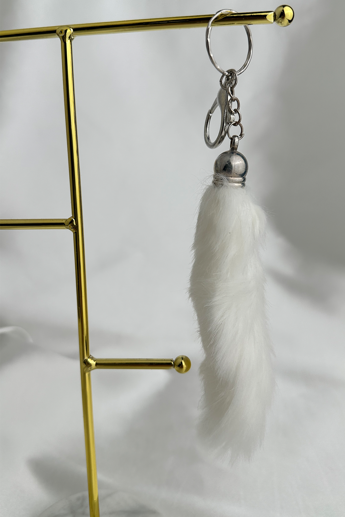 💫 Ürün Adı: Gümüş Rengi Uzun Tüy Çanta Aksesuarı (15cm)